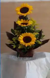 Arreglo de girasoles y follajes mas tarjeta personalizada. de color Amarillo ideal para el Agradecimiento