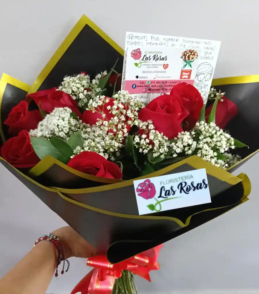 12 ROSAS ROJAS DE EXPORTACION FOLLAJES VERDE Y BLANCO DECORACION PAPEL COREANO MOÑO Y TARJETA