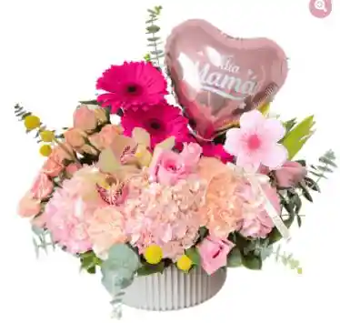 Un diseño imponente y exclusivo que reúne la belleza de las flores más elegantes en una sola creación 🌸✨. Incluye un arreglo floral en base de cerámica con gerberas, hortensias, rosas, orquídeas, claveles, lirios y follaje fresco, acompañado de un globo metalizado de 9". Si nos envías tu mensaje, te obsequiamos la tarjeta personalizada para expresar tus sentimientos de manera única. REF: MAM8