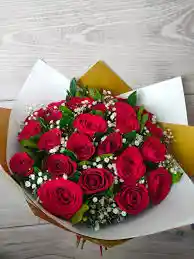 Arreglo floral de 24 rosas rojas. Las rosas son, sin duda, la flor del amor y la pasión.Cada color tiene su propio significado: el rojo simboliza el amor profundo. Si deseas agregar un mensaje y remitente. Déjalo en el chat! Nota: las imágenes son de referencia el producto puede cambiar de acuerdo a la disponibilidad y el tamaño del producto. Somos Vida Floral!