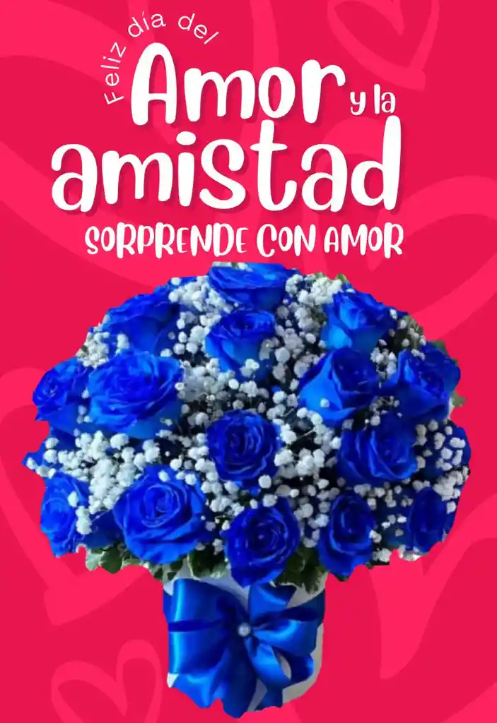ARREGLO REDONDO 24 ROSAS AZULES PERLA FOLLAJE VERDE CAJA BLANCA MOÑO, TARJETA PERSONALIZADA