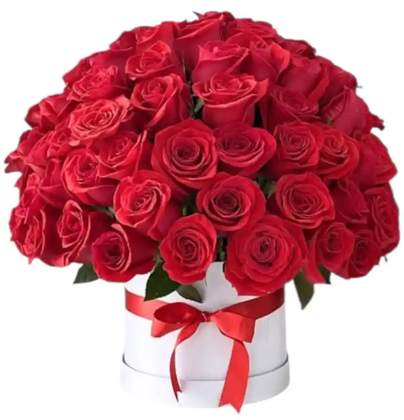 CAJA REDONDA CON 100 ROSAS ROJAS CAJA BLANCA MOÑO TARJETA PERSONALIZDA
