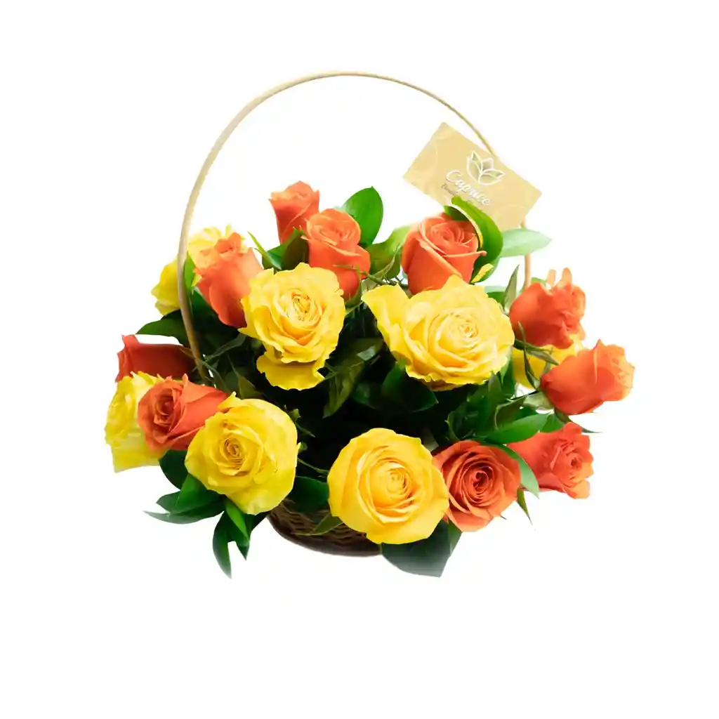 Arreglo floral Canasto amanecer x 24 rosas exportacón
