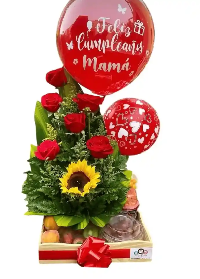 contiene 6 rosas rojas 1 girasol follaje verde uvas fresas manzana verde manzana roja pera duraznos bon yurt decoración tarjeta personalizada ramo de frutas y rosas hermoso ramo rosas y frutas ancheta de frutas sorprende a la persona q amas co. este hermoso arreglo frutal regalo de mujer ancheta para mamá ancheta de cumpleaños