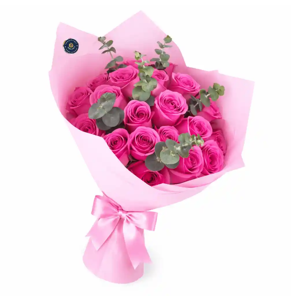 Un regalo clásico y abundante que expresa amor y celebración en grande 🌹. Incluye un bouquet de veinticuatro rosas frescas con follaje, envueltas en papel fino de lujo y terminado con un moño decorativo. Si nos envías tu mensaje, te obsequiamos la tarjeta personalizada para expresar tus sentimientos de manera única ✨. Ref: FLW08