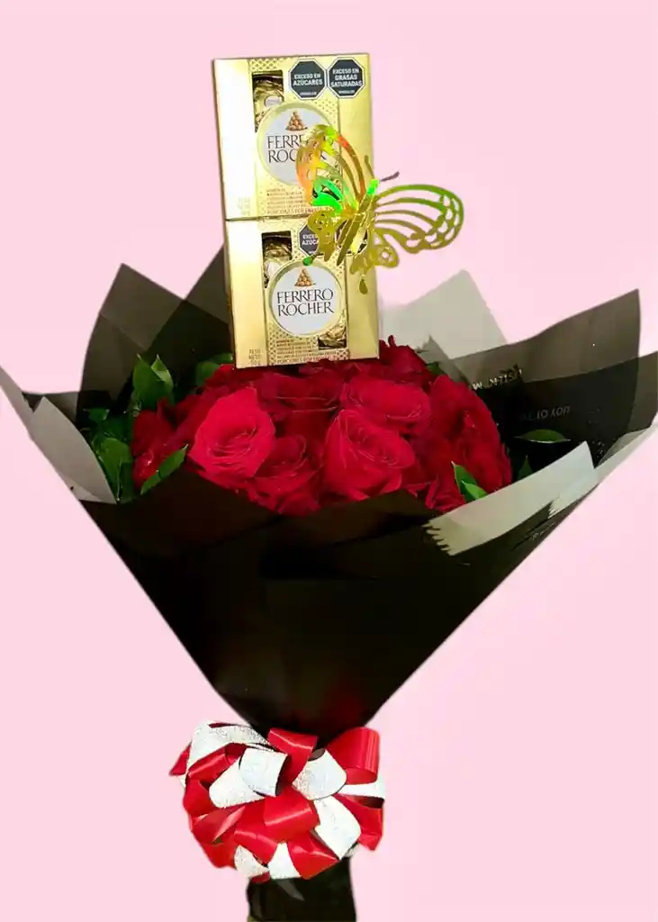 Contienen 24. Rosas Rojas. follaje verde Chocolate, Ferrero x 8 Decoración Tarjeta personalizada