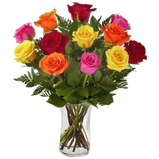 espectacular florero de 12 rosas de colores surtidos de tipo exportación, este hermoso detalle incluye mensaje personalizado