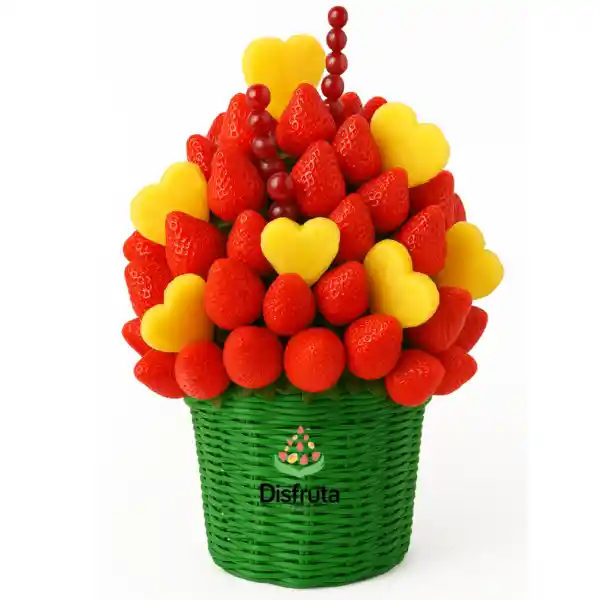 Frutas 🍇🍍🍏🥭que no solo conquistan el paladar, sino también el ❤️. ✨ Incluye: Deliciosos corazones de piña, ricas uvas y exquisitas fresas. 💌Tarjeta dedicatoria incluida. 🎀 Envoltura en papel celofán con lazo de color. 📦 Frutas sujetas a disponibilidad. 📏Tamaños: 🔸 Mediano (20x25 cm) 76 porciones aprox.