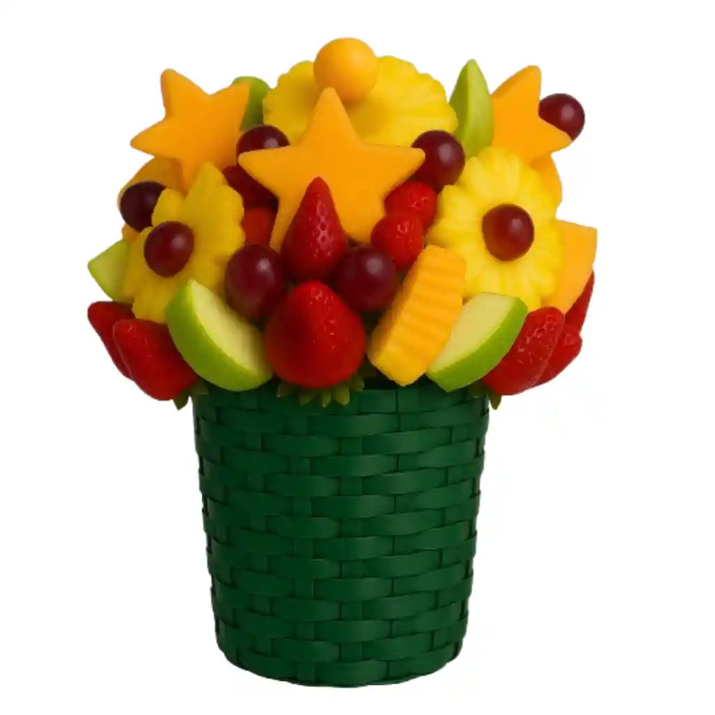 Disfru Diet Ideal para los que cuidan y valoran su salud. 💙 ✨ Incluye: Ricas fresas, estrellas y bolitas de melón, mango, uva, flores de piña y manzana verde. 💌Tarjeta dedicatoria incluida. 🎀 Envoltura en papel celofán con lazo de color. 📦 Frutas sujetas a disponibilidad. 📏 Tamaños 🔸 Pequeño (17x22 cm) – 53 porciones aprox.
