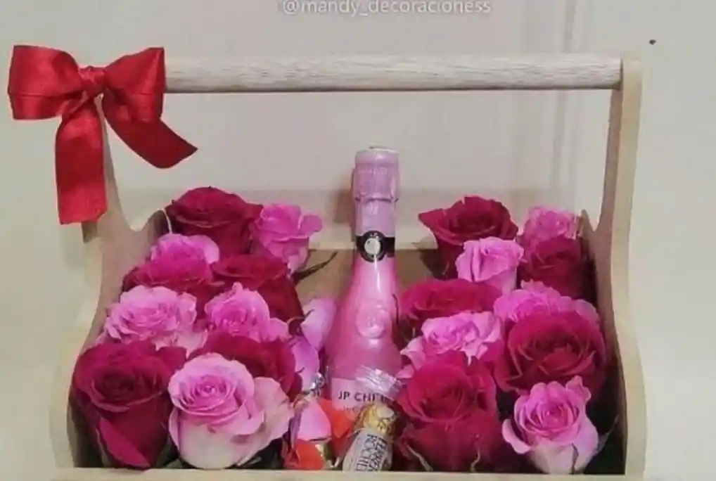 Arreglo de de flores, rosas, vino JP Chennet, chocolates