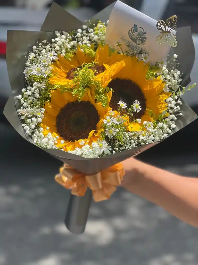 ARREGLO MANUAL DE 3 GIRASOLES INCLUYE TARJETA PERSONALIZADA