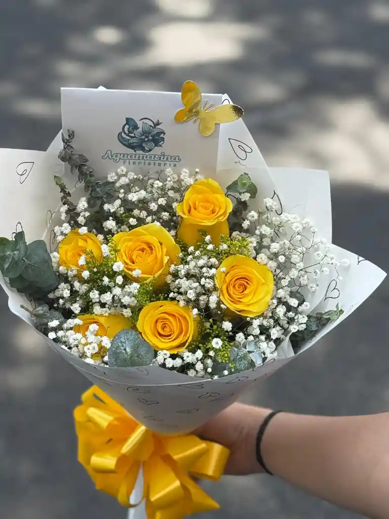 ARREGLO MANUAL DE 6 ROSAS DEL COLOR QUE ESCOJA EL CLIENTE INCLUYE TARJETA PERSONALIZADA