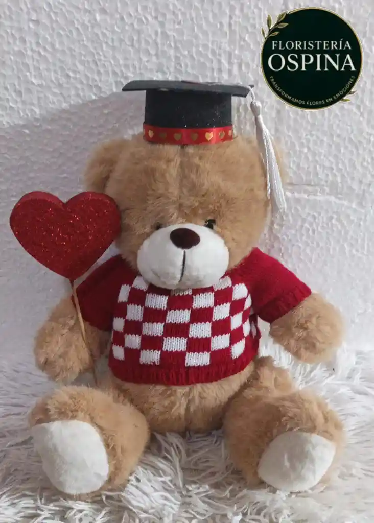 Porque los logros se celebran mejor con ternura y amor. Nuestro Osito de Éxito de Floristería Ospina es ese detalle coqueto y dulce que dice “¡Felicidades, lo lograste!” con una sonrisa. Luce su birrete con orgullo, lleva un corazón que simboliza admiración y cariño, y está listo para acompañar a esa persona especial en su nueva etapa. ✨ Incluye: Peluche con gorrito de graduación. Suéter rojo tejido con diseño de cuadros. Corazón brillante decorativo. 🌹 En Floristería Ospina, transformamos flores y momentos en emociones.