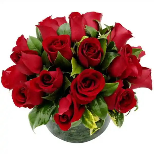 Arreglo de Rosas Frescas en Forma Redonda Con Florero de Cristal Tipo Pecera 24 U