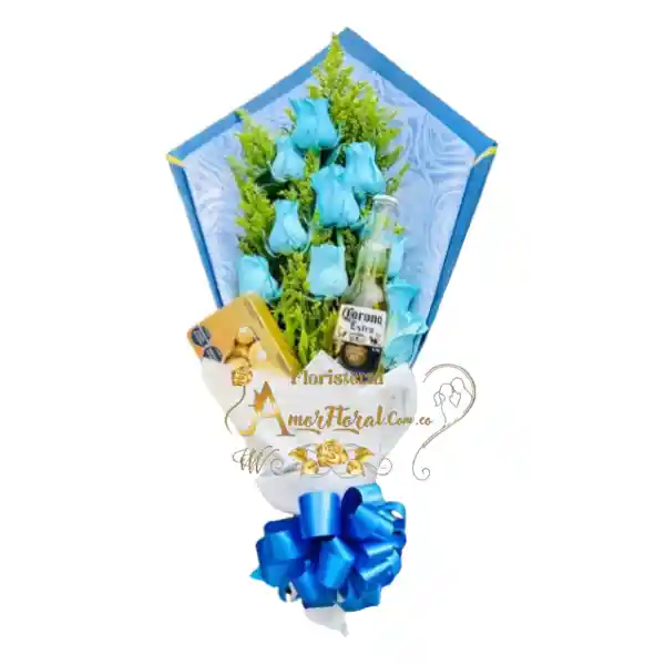 boquet por 12 rosas, ferrero por 8 unidades, cervesa corona pequeña, si deseas un mensaje para la tarjeta lo puedes dejar escrito en el área de observaciones o escribirnos al whatsapp al 3143111616 y enviarnos el mensaje para la tarjeta.
