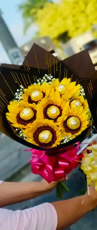 un hermoso ramo para un ocacion muy especial CONTIENE 7 girasoles 7 chocolates decoración ETIQUETAS Caja de flores Caja de rosas Regalo de flores Flores Regalo sorpresa Regalo Para Mujer Regalo Feliz Dia Mujer Arreglo de rosas bouquet de rosas Arreglo de Girasoles Girasoles Regalo de amor y amistad