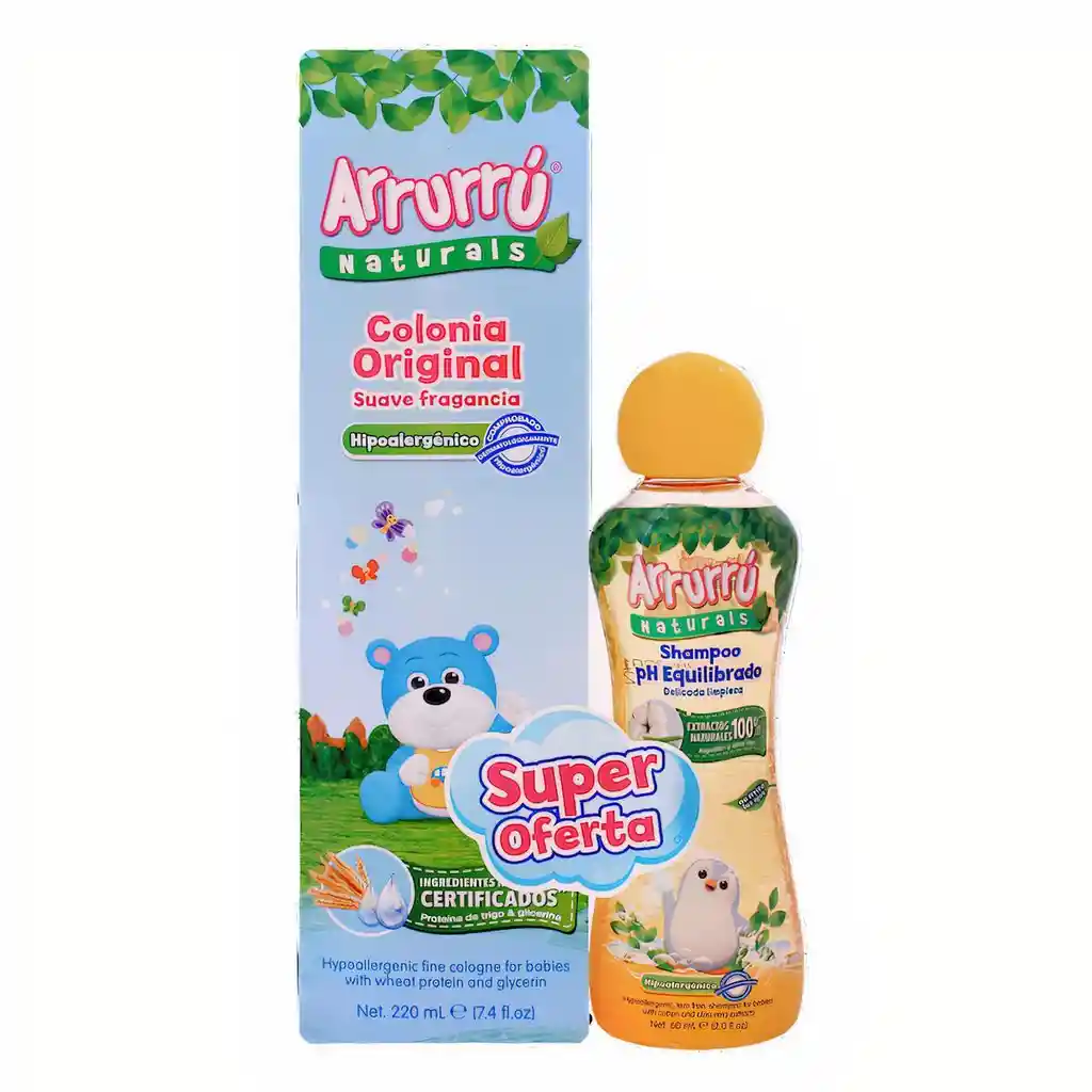 Esta colonia natural será tu mejor opción gracias a su contenido de glicerina y proteína de trigo, brinda hidratación y suavidad a la tierna piel de tu bebé. También incluye el champú natural que contiene extracto de algodón y extractos certificados de aloe vera. El pack contiene 1 colonia por 220 ml y 1 champú por 60 ml.