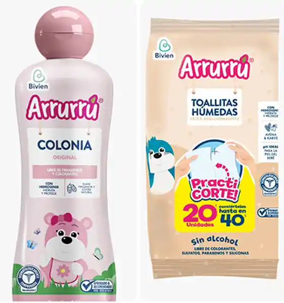 Set Arrurrú Contiene 2 Unidades. Colonia 800 mL + Toallita 20 Und.