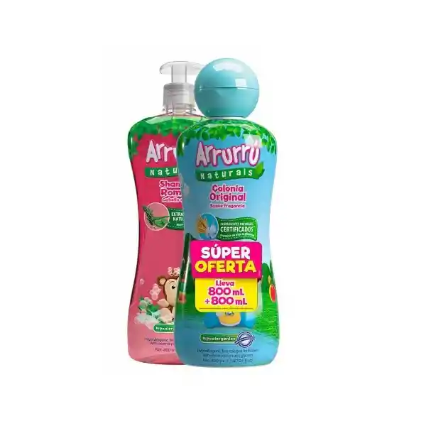 Contiene 2 Unidades de 800 mL c/u Arrurrú Shampoo Romero 800 mL + Colonia Azul 800 mL.