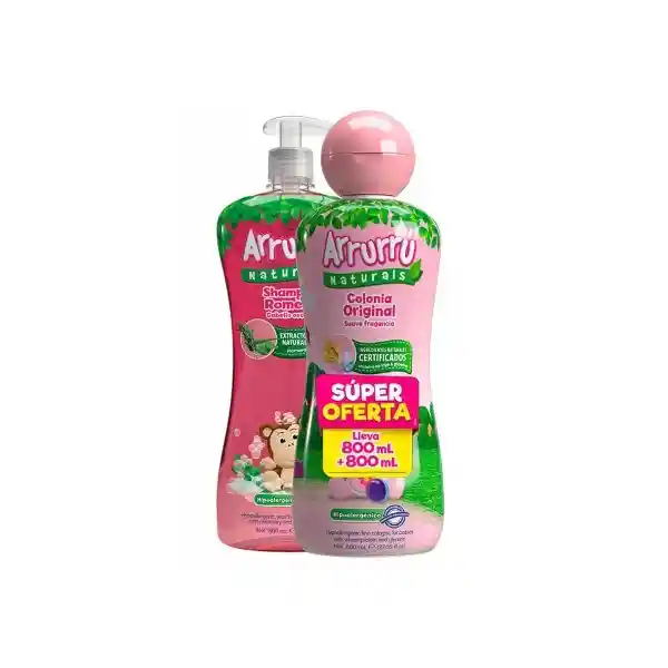 Contiene 2 Unidades de 800 mL c/u Arrurrú Shampoo Romero 800 mL + Colonia Rosa 800 mL.