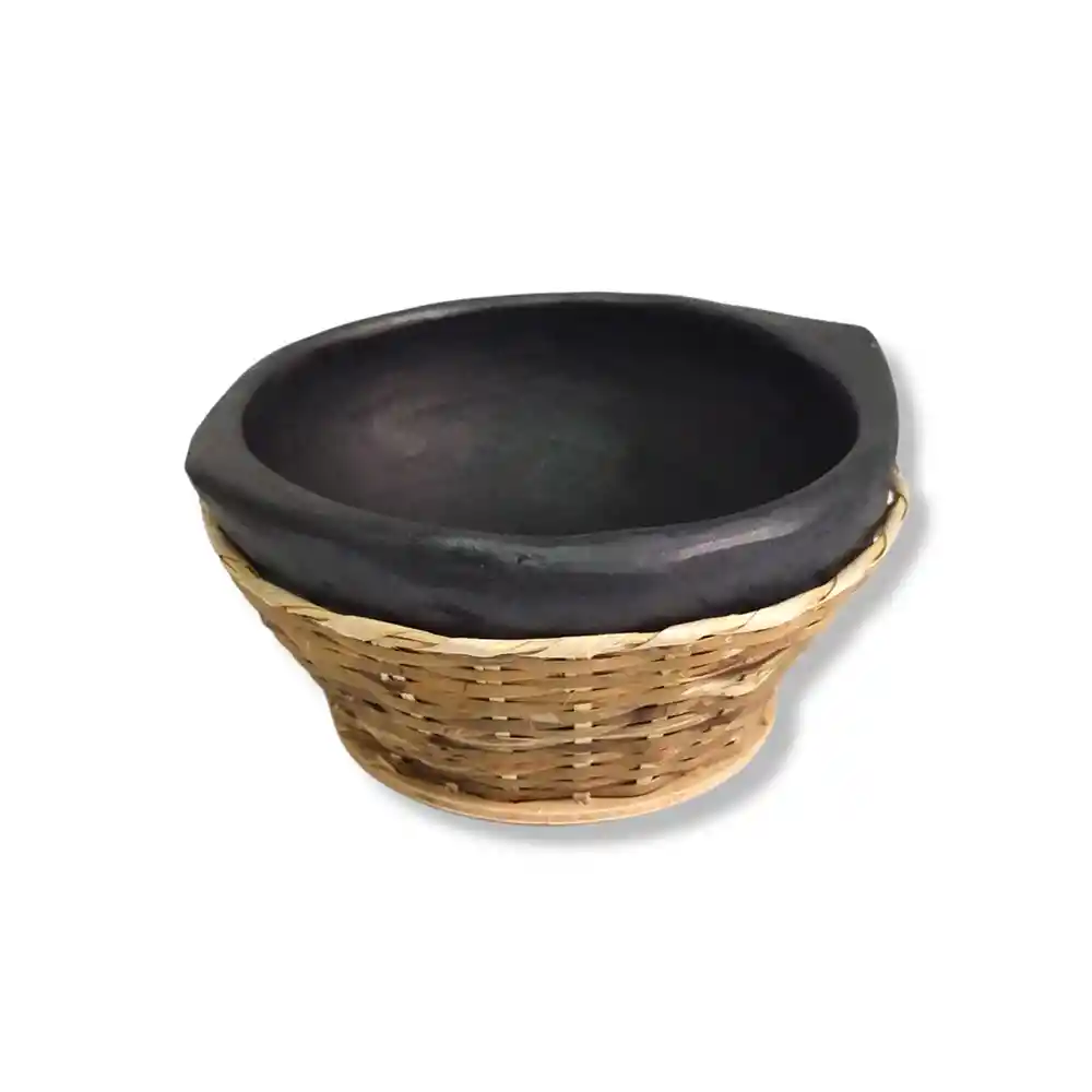 Cazuela De Barro Con Canasto Sancochera Ahora podrá preparar y servir un delicioso sancocho, frijolada, marisco, platos típicos Colombiano, ideales también para utilizar a fuego directo u hornos convencionales ya que aguanta hasta 280 grados de temperaturas, cazuela apta para contacto directo con alimentos, producto 100% artesanal y Colombiano. No espere más para agregar las cazuelas en su vajilla y servir los platos típicos de nuestro país. -Medidas: Alto: 10 cm Ancho total : 20 cm aproximado Diámetro boca cazuela: 17 cm aproximado Ancho base canasto: 13 cm aproximado -Capacidad: 800 ml/ 27 oz aproximado -Peso del articulo: 764 gramos Nota: Producto totalmente artesanal, sus medidas pueden variar de 5 mm - 10 mm o aumentar, igual pasa en el color negro de la artesanía, el quemado del aserrín también puede variar su color Recomendaciones de uso: Se recomienda antes de su primer uso lavar con abundante agua y jabón, poner encima de la hornilla a fuego medio, pasar de 2 a 3 veces la cascara de un plátano por la parte blanca o poner un poco de leche y esparcirla bien por dentro de la artesanía, una vez terminado el proceso dejar enfriar, lavar nuevamente y listo para usar o servir.