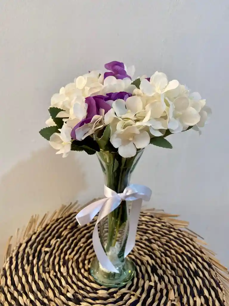 Hermoso arreglo artificial con flores artificiales, que precisa tu atención por su sencillez y elegancia. Incluye tarjeta (De, Para y Mensaje)