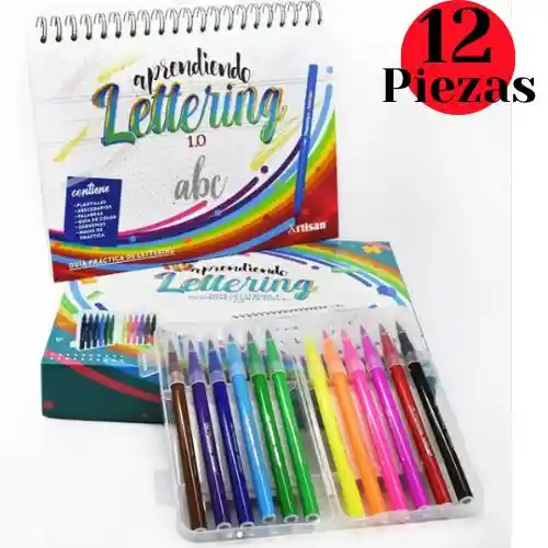 Plantillas en block para lettering mas marcadores punta pincel. Los plumones te permite ejecutar trazos variables. Son 50 páginas de opalina en 180 gramos, argollado y en pasta dura que contienen ayudas ilustrativas para escribir entre ellas: Plantillas Abecedarios Palabras Guia de color esquemas Hojas de práctica