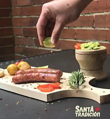 CHORIZO ASADO 100 % SANTARROSANO DE RISARALDA PARA EL VALLE CON AREPA Y LIMON , AJI HABANERO