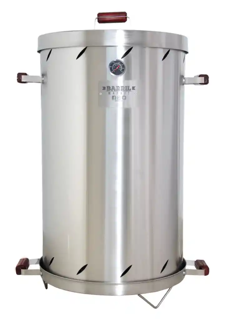 Asador tipo barril en acero inoxidable, calibre 3.04 Garantia de 5 años solamente en el acero Medidas: 90 cm de altura x 52 cm de diametro.