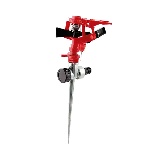 Aspersor metálico c/ estaca plástica, riego efectivo,