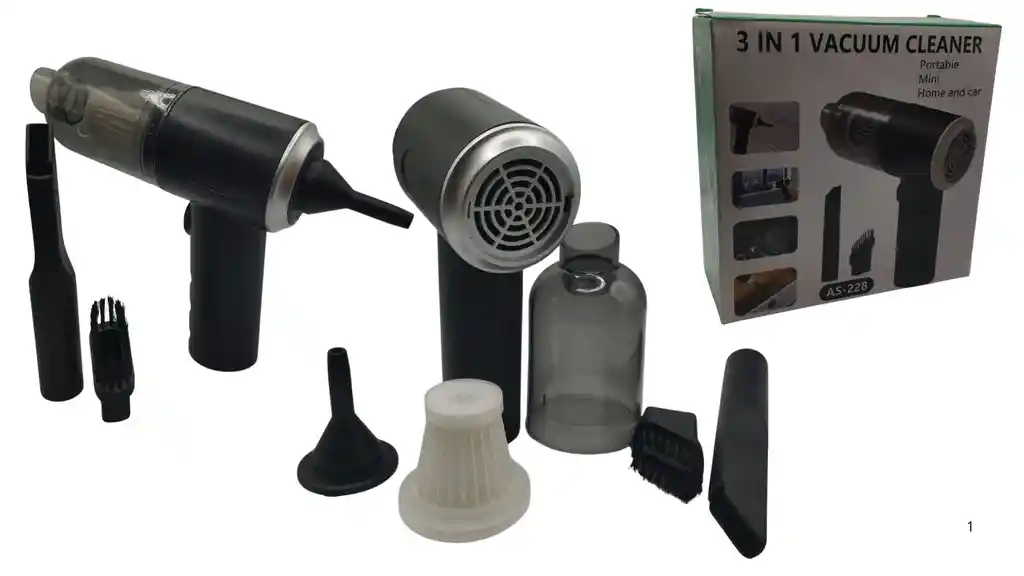 Producto: Aspiradora 3 en 1 Mini Portátil Ideal para el Hogar y el Carro Referencia: AS-228 Potente, práctica y fácil de usar. La Aspiradora 3 en 1 Mini Portátil referencia 610A es la solución ideal para mantener limpios los espacios de tu hogar y tu vehículo de manera rápida y eficiente. Gracias a su diseño compacto y liviano, podrás llevarla a cualquier lugar y utilizarla en espacios reducidos sin dificultad. Su sistema 3 en 1 permite aspirar polvo, migas, suciedad ligera y residuos pequeños en diferentes superficies como muebles, escritorios, teclados, asientos de carro, alfombras y rincones difíciles de alcanzar. Es perfecta para mantener tu carro impecable y tu hogar libre de polvo en todo momento. Su diseño ergonómico facilita el agarre y la manipulación, permitiendo una limpieza cómoda y sin esfuerzo. Además, cuenta con accesorios funcionales que mejoran la experiencia de uso, adaptándose a distintas necesidades de limpieza. CARACTERÍSTICAS: Diseño compacto, liviano y portátil Función 3 en 1 para diferentes tipos de limpieza Ideal para el hogar y el carro Fácil de usar y transportar Sistema de succión eficiente Condición del producto: Nuevo MEDIDAS: Medidas compactas ideales para guardar en compartimientos del vehículo o cajones del hogar ¿QUÉ INCLUYE TU PRODUCTO? 1 Aspiradora 3 en 1 Mini Portátil referencia 610A Accesorios funcionales para limpieza en diferentes superficies MMMMMMMMMMMMMMMMMMMMMMMMMMMMMMMMMMMMMMMMMMMMMMMMM MÁS DETALLES: Condición: Nuevo MAS INFORMACIÓN DE NOSOTROS Somos INVERSIONES MAZUGI. Importadores directos desde china Cumplimos con distribuir a todo el país. Estamos ubicados en Bogotá, somos tienda virtual y física PRODUCTOS AL POR MAYOR Y DETALLE Somos una empresa importadora y comercializadora de productos de Alta Calidad de varias categorías como: belleza, tecnología, hogar, juguetería, cuidado personal, entre otras.