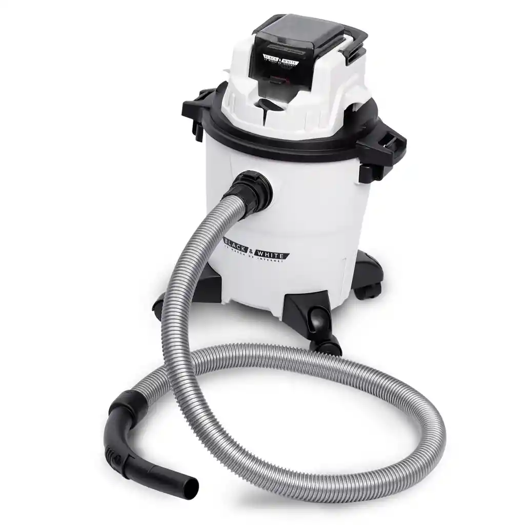 Aspiradora inalambrica recargable seco y húmedo, bateria de 18V 2Ah, 300Watt, 15 litros de capacidad, 11.5 Kpa. Filtro reutilizable. Incluye manguera tipo acordeon, ruedas, extension triple para techos o piso, diferentes puntas y cepillos.