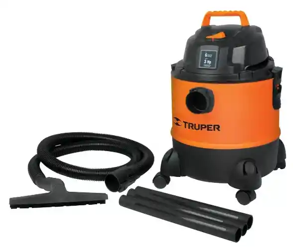 Descripción CARACTERÍSTICAS Resistente construcción de polipropileno Organizador de accesorios incluido Sistema de expulsión de aire para soplar residuos en lugares de difícil acceso Ruedas y asa para fácil transporte ESPECIFICACIONES Capacidad 6 gal (23L) Potencia máxima 3 HP (2,200W) Potencia nominal 1.15 HP (850W) Tensión 120 V Frecuencia 60 Hz Corriente 7 A Presión de aspiración 1.4 PSI (9.6kPa) Presión de salida 1.7 PSI (11.7kPa) Largo de manguera 1.8 m Largo del cable 3.66 m Nivel de ruido 85 dB Peso 4.9 kg Empaque individual Caja Caja 1 Pallet 18 INCLUYE 1 Manguera con ajuste seguro 1 Cepillo para suelo 3 Tubos de extensión 1 Filtro de manga de espuma 1 Filtro de tela reutilizable 4 Patas con ruedas giratorias APLICACIONES Aspira polvos y líquidos, excelente para limpieza en el auto, taller, casa u oficina CUIDADOS Soporta 30 minutos de trabajo por 15 minutos de descanso. Máximo diario 3 horas