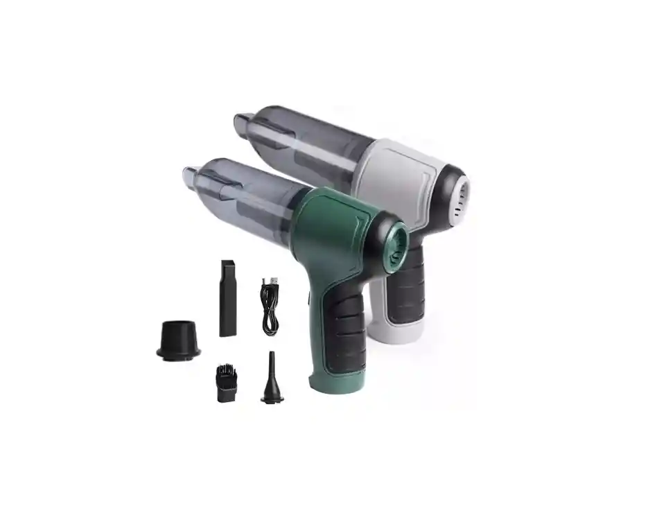 Aspiradora Portátil Inalámbrico 3 En 1 Haz de la limpieza una tarea rápida y eficiente con el Aspirador Portátil Inalámbrico 3 en 1. ¡No esperes más para tener un hogar reluciente y libre de suciedad!" Descripción: Material: ABS + motor grande de cobre puro Voltaje nominal: DC 7,4 V Grado de vacío: aproximadamente 9000Pa para carga inalámbrica Velocidad nominal: 38000 rpm/min Modelo de batería Capacidad de la batería: 2.2000mAh Método de carga: cable de carga USB de 5V Potencia nominal: 120W Ruido: 84dB Temperatura de funcionamiento: -20 C + 50 C Longitud del cable USB: aproximadamente 1m Accesorios del producto: 1 pieza de paja, 1 pieza de cepillo, (1 Juego de anillo de natación con succión inflable) Manual 1 pieza, USB 1 pieza de cable de carga, 1 pieza de aspiradora de coche) Garantía del vendedor: 1 meses