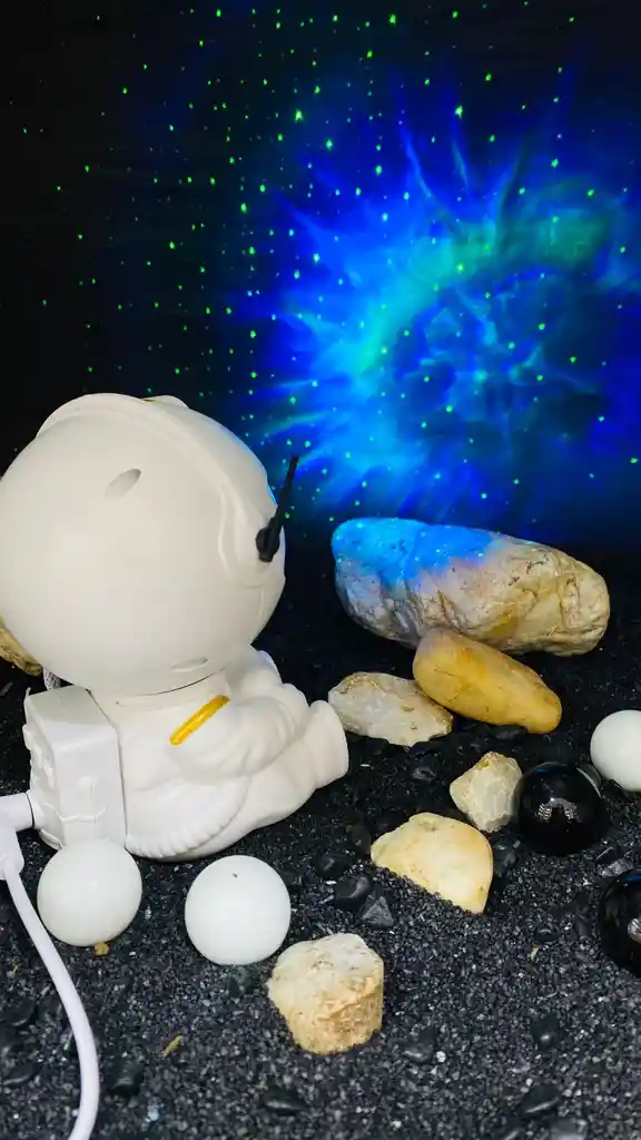 Proyector de cielo estrellado + proyector de galaxia: esta luz de galaxia proyecta 7 luces diferentes, proyectarla en la pared o techo de una habitación es como estar en una galaxia y nebulosa de ensueño, creando nebulosas coloridas y cambiantes y paisajes de ensueño realistas. Gran luz ambiental para la noche de películas, noche de cita o configuración de juegos. Diseño único e innovador: el diseño único de aspecto astronauta es delicado y encantador, incluso cuando no está en uso es una buena decoración, la cabeza se puede girar magnéticamente 360° para proyectar las nebulosas en cualquier lugar sin ninguna limitación