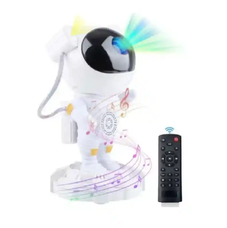 ¡Sumérgete en un viaje estelar desde la comodidad de tu hogar con nuestro Proyector de Estrellas Nebulosas con Altavoz Bluetooth! Características Sobresalientes: Experiencia Galáctica en Casa: Transforma tu habitación en un impresionante paisaje estelar con nuestra luz nocturna proyectora de estrellas. Con una amplia gama de colores de nebulosas, estrellas y la luna, crea un ambiente sereno y relajante que te transportará más allá de las estrellas. Altavoz Bluetooth Integrado: Conecta tu teléfono a través de Bluetooth y sumérgete en un mundo de música mientras disfrutas del espectáculo celestial. Este proyector no solo es un accesorio de iluminación, ¡sino también un altavoz para acompañar tus momentos más íntimos o festivos! Ángulo de Proyección Ajustable: Diseñado para parecer un astronauta, este proyector ofrece un ángulo de proyección ajustable. La cabeza del astronauta se conecta magnéticamente al cuerpo, permitiéndote personalizar el ángulo de la proyección de las nebulosas para adaptarse a tu espacio. Control Remoto y Temporizador: Personaliza tu experiencia de proyección con el control remoto, ajustando el patrón, el brillo y la velocidad de rotación. Configura el temporizador para que la luz nocturna se apague automáticamente después de que te hayas quedado dormido bajo un cielo estrellado. Perfecto para Todas las Ocasiones: Ya sea una noche de cita romántica, una sesión de juego emocionante o una noche de cine acogedora, este proyector de estrellas es el complemento perfecto. También es ideal como luz nocturna para acompañar a los niños mientras se quedan dormidos. Con nuestro Proyector de Estrellas Nebulosas con Altavoz Bluetooth, disfruta de una experiencia celestial sin igual en la comodidad de tu hogar. ¡Adéntrate en el universo y crea momentos inolvidables bajo un cielo estrellado!