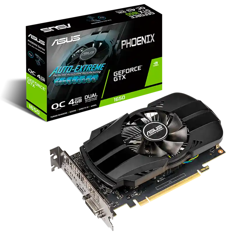 Especificaciones: Motor gráfico: NVIDIA GeForce GTX 1650 Estándar de autobús: PCI Express 3.0 OpenGL: OpenGL 4.6 Memoria de video: 4GB GDDR5 Reloj del motor: Modo OC: GPU Boost Clock: 1710 MHz, GPU Base Clock: 1485 MHz Modo de juego (predeterminado): GPU Boost Clock: 1680 MHz, GPU Base Clock: 1485 MHz Núcleo CUDA: 896 Velocidad de memoria: 8002 MHz Interfaz de memoria: 128 bits Resolución: Resolución máxima digital 7680 x 4320 Interfaz 1x (DVI-D nativo) 1x (Nativo HDMI 2.0b) 1x (Nativo DisplayPort 1.4) Soporte máximo de pantalla: 3 Dimensiones: 19 x 11 x3.8 Centímetro Fuente de alimentación recomendada: 300W Garantía: 12 meses