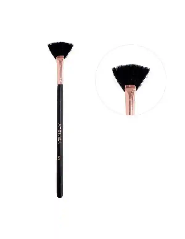 BROCHA ABANICO Brocha abanico mini, ayuda aplicar iluminador en las zonas altas del rostro, también ayuda a eliminar excesos.Lavar las brochas cada 15 días para evitar acumulación de gérmenes y bacterias.