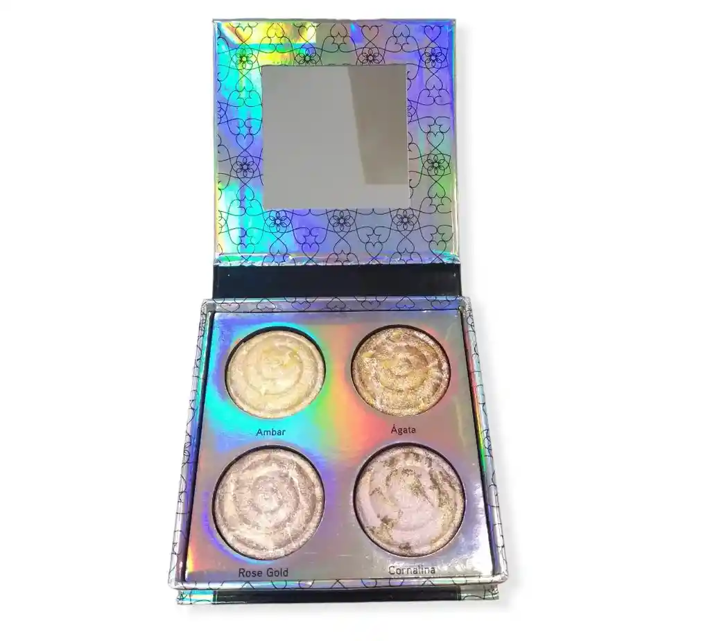Paleta de 4 iluminadores para maquillaje de rostro y ojos.