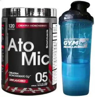 El nuevo Atomic de SmartMuscle es una nueva formula de creatina monohidratada que busca darle un turbo a tu cuerpo y mente. Este suplemento potencia tu energía muscular, permitiéndote alcanzar nuevas metas en el gimnasio con mayor fuerza y resistencia. Además, ayuda a que tus músculos crezcan y se recuperen más rápido, manteniéndolos hidratados y listos para la acción. Y no solo beneficia tu cuerpo, sino también tu mente, ayudando a mejorar el enfoque y la memoria. Atomic es el secreto para llevar tu entrenamiento y rendimiento mental a un nivel superior. El producto viene en presentación de 600g y debe consumirse 1 scoop (cuchara dosificadora dentro del producto) en 200-300ml de agua todos los días sin falta, pero si deseas aportar 5g de creatina, se deben consumir 2 scoops al día.