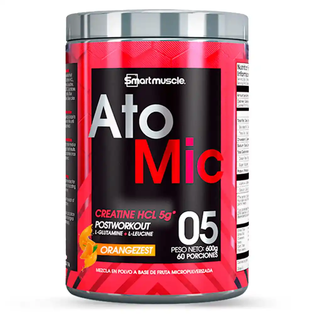 Crea Tomic y su potente fórmula con 5g de Creatina HCL, 3g de Leucina y 3g de Glutamina te permitirán pasar al siguiente nivel de la construcción muscular. La sinergia de estos 3 componentes es la mezcla perfecta para potenciar la síntesis proteica que te permite construir músculo con mayor eficiencia, mejora la absorción de los aminoácidos en el organismo, siendo así mayor la biodisponibilidad y los beneficios, repara rápidamente los tejidos dañados y provee al músculo con mayores fuentes energéticas que hacen retrasar la fatiga muscular durante los entrenamientos de alta o larga intensidad. La Creatina HCL tiene mejor biodisponibilidad dentro de nuestro organismo, lo que garantiza una mejor absorción y mejores resultados. Los aminoácidos que conforman la creatina son Arginina, Metionina y Glicina y son perfectos para la construcción y reducción de la fatiga muscular, tener mejor rendimiento deportivo y aumentar la eficiencia en la reparación del músculo. La Leucina es un aminoácido vital en el proceso de señalización para el crecimiento muscular, sin este aminoácido nuestro cuerpo no sería capaz de construir músculo sin importar que tan fuerte entrenes o que tan bien comas. La Glutamina es perfecta para aumentar la reparación de tejidos, por lo tanto, la sensación de cansancio al día siguiente se verá drásticamente reducida, lo que te brindará una mejor motivación para entrenar y sacar lo mejor de tí cada día en cada entreno.