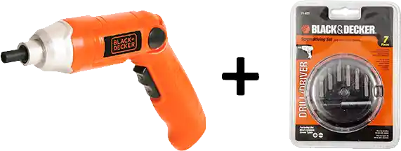Atornillador de 3,6V-Batería Integrada-Cargador-Punta Doble para Atornillar-Set 7 puntas(3 Puntas Phillips Cruz/3 Puntas Planas/1 alargue fino)-Características:Potente motor-función de avance/reversa-Voltaje: 3.6v-Velocidad:200rpm-Tiempo de carga:8hs
