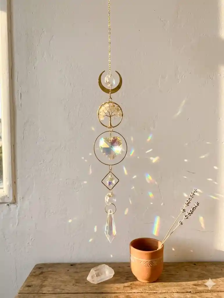 Atrapasol con árbol de la vida y cuarzos de citrino. Energéticos y bonitos.