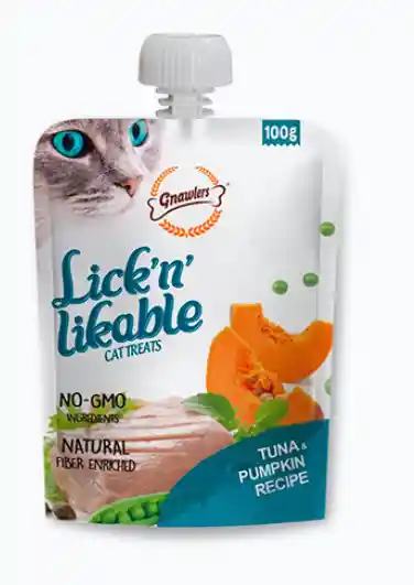 atún y calabaza de origen regional. Se incluyen nutrientes cuidadosamente seleccionados para lograr una palatabilidad óptima. Lick’n Likable utiliza ingredientes saludables que incluyen proteínas frescas de origen regional, niveles óptimos de contenido de grasa y absolutamente ningún conservante.