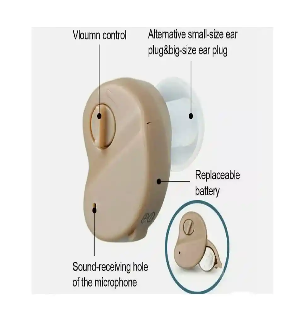 Características: 1. Pequeño e invisible: el audífono personal es lo suficientemente pequeño y ligero como para esconderse en el canal auditivo, por lo que nadie puede verlo y ocultarlo fácilmente. Apenas notará que lo está usando. Se encuentra en el canal auditivo y es tan pequeño que es básicamente invisible. 2. Sonido: la calidad de sonido de élite de este dispositivo puede lograr un sonido natural y sin amortiguación. Ahora puede volver a escuchar a sus amigos y familiares con claridad. Este audífono puede ayudarlo a recuperar su sentido del oído y darle una forma de vida.