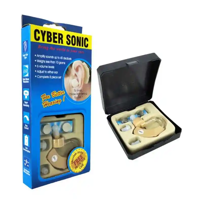 Es un dispositivo de ayuda auditiva que amplifica los sonidos. Amplifica los sonidos hasta 40 decibelios. Pesa menos de 10 gramos. Tiene 6 niveles de volumen. Se puede ajustar a cualquiera de los oídos.