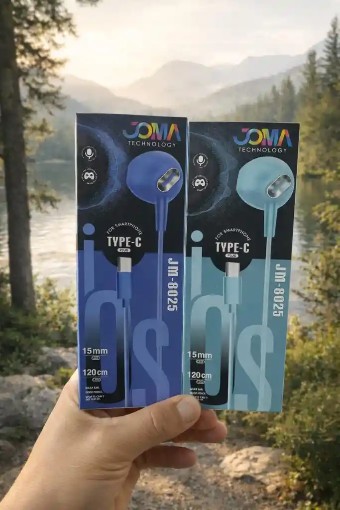 🎧 Audífonos JOMA Type-C JM-8025 🔊 Sonido de Alta Calidad Disfruta una experiencia auditiva superior gracias a sus drivers de 15 mm, que ofrecen un sonido claro, potente y con bajos profundos. Ideales para música, llamadas y contenido multimedia. 🔇 Aislamiento de Ruido Diseñados para reducir el ruido exterior, permitiéndote concentrarte en lo que realmente importa: tu música o tus llamadas. ⚡ Conector Tipo-C de Última Generación Compatibles con los dispositivos más modernos del mercado. Conexión estable, rápida y sin interferencias. 📱 Compatibilidad Premium Perfectos para smartphones de gama alta como iPhone 15 / 16 / 17 (con adaptador o USB-C según modelo), Samsung Galaxy, Xiaomi, Huawei y más. También funcionan con laptops y tablets con entrada Tipo-C. 📏 Cable Resistente de 120 cm Longitud ideal para mayor comodidad y libertad de movimiento, fabricado con materiales duraderos. 🎙️ Micrófono Integrado Realiza llamadas con claridad y sin interrupciones, perfecto para trabajo y uso diario.