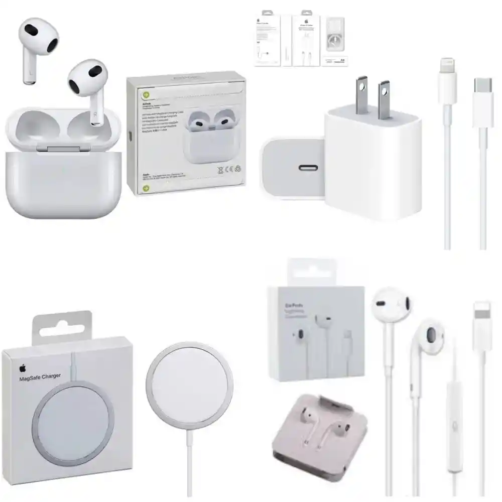 Airpods 3 generacion 2024 audifonos inalambricos multi funciones GENERICO Audio espacial. Tips: Usar PodsBattery Con Android para tener funciones similares al Iphone Modo ambiente Cancelacion de ruido passiva Sensor de movimiento Deteccion de oreja Configuracion avanzada de audio Recarga optimizada Version de Bluetooth 5.0 Opción de pausa automatica al quitarte los audífonos (Deteccion de oreja) Compatibles GPS y opción "Find me" o "Encontrar" Compatibles con Carga Inalámbrica Interfaz de vinculación Resistentes al agua Compatible con siri y/o asistencia por voz Compatibles con Android/ iOS/ Windows / Mac Sonido HQ envolvente/ HD Bass Botones tactiles Bateria de alta duracion (Hasta 6 Horas de reproducción, por carga) Hasta 20 horas de carga en total Conecion automatica con ventanas emergentes pop up Contenido: Audifonos 3ra generacion Caja Airpods 3 completa y nueva base de carga MagSafe Cable de carga tipo C a lightning 1 metro Manuales de uso Cargador magsafe inalambrico iphone AAA 1:1 Replica CARGA MAGNÉTICA: el conjunto de cargador inalámbrico Magsafe está especialmente diseñado para la alineación magnética de la serie iPhone 12 y mas, bloque de imán fuerte incorporado, la función de adsorción magnética fuerte le permite ajustar el ángulo libremente sin desviarse del centro del cargador. CARGA RÁPIDA: se adaptará automáticamente a diferentes potencias de salida según el modelo de teléfono para garantizar una carga rápida y segura de su dispositivo. SEGURIDAD MÚLTIPLE FIABLE: la exclusiva tecnología de protección inteligente multifuncional proporciona control de temperatura, protección contra sobretensiones y prevención de cortocircuitos. El cargador MagSafe hace que la carga inalámbrica sea muy sencilla. Los imanes perfectamente alineados se adhieren a su iPhone 12 o iPhone 12 Pro y brindan una carga inalámbrica más rápida de hasta 15W. El cargador MagSafe mantiene la compatibilidad con la carga Qi, por lo que puede usarse para cargar de forma inalámbrica su iPhone 8 o posterior, así como los modelos AirPods con un estuche de carga inalámbrica, como lo haría con cualquier cargador certificado por Qi. Recomendado: adaptador de corriente USB-C de 20 W Apple que se vende por separado. CONTENIDO DE LA CAJA: -MagSafe Charger -USB-C integrated cable (1 m) AMPLIA COMPATIBILIDAD: esta plataforma de carga inalámbrica es compatible con iPhone 12 y adelante hasta el 14 pro max actual. Cargador Iphone 20w Aaa 1:1 Replica Carga Rapida Garantizada Producto estrella en su categoria Garantizado Adaptador de corriente USB -C de 20 W Carga Rápida AAA 1:1 Cargador usb tipo C 20W PD Carga rápida Entrada: AC100-240V 50 / 60Hz 0.5A internacional universal Potencia de salida: 20 W (máximo) Parámetros de salida: 5V / 3A, 9V / 2A Cargador Carga Rápida tipo C 20W Carga de 0 a 50% en tan sólo 30 minutos. Cable USB-C a Conector Lightning de 1 Metro CONTENIDO DE LA CAJA: – Adaptador de corriente USB-C de 18W – Cable USB-C a Conector Lightning de 1 Metro. Compatible con cualquier Iphone, ipad y dispositivos iOS con entrada Lightning. Incluye: Caja sellada Cargador 20W cable tipo C a lightning 1 metro Manual Audifonos Tipo Apple Earpods con conector Lightning A diferencia de otros auriculares, el diseño de los EarPods se basa en la anatomía del oído, por eso resultan más cómodos que cualquier otro auricular de este tipo. Los altavoces de su interior reducen al mínimo la pérdida de sonido al tiempo que aumentan la potencia acústica. El resultado es un audio de una calidad extraordinaria. Además, los EarPods con conector Lightning también incluyen un mando integrado en el cable para ajustar el volumen, controlar la reproducción de música y vídeo, y responder o colgar llamadas. Los EarPods funcionan con todos los dispositivos que tengan conector Lightning y sean compatibles con iOS 10 o posterior, como el iPod touch, el iPad y el iPhone. CARACTERISTICAS PRINCIPALES Bajos más profundos y con más matices Mayor protección contra el agua y el sudor Controla la reproducción de música y vídeo Responde y cuelga llamadas Control remoto de línea y micrófono Acepta llamadas telefónicas y controla la reproducción y el volumen de tu música Control remoto de línea y micrófono Acepta llamadas telefónicas y controla la reproducción y el volumen de tu música Control Integrado de volumen, reproducción de música y responder o colgar llamadas. Largo de Cable 125cm. Impedancia 32 ohm Frecuencia de respuesta: 20 kHz Sensibilidad: 93.2 dB El Paquete Incluye: Audifonos Tipo Apple Earpods Lightning Connector AAA Manuales de uso Caja