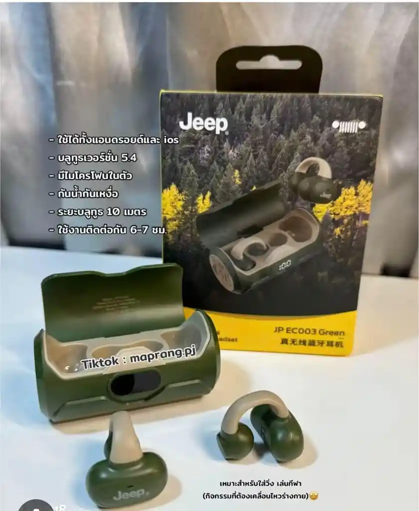 Auriculares inalámbricos Jeep EC003 con Bluetooth 5.4 y clip para la oreja, con micrófono, miniauriculares inalámbricos Bluetooth para correr, hacer deporte y gimnasio, USB-C, compatibles con Android e iOS.