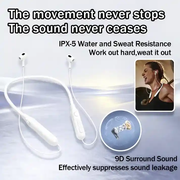 Audífonos inalámbricos tipo banda para el cuello Bluetooth 5.0 con conexión estable Baja latencia menor a 30 ms Control táctil (Touch Control) Material flexible de silicona Controlador de audio dinámico Compatible con códec AAC Tiempo de carga aproximado 1 a 3 horas Interfaz de carga USB a Micro USB Diseño ergonómico y ligero Resistencia básica al agua Chipset Jerry Empaque individual BENEFICIOS PRINCIPALES Mayor comodidad gracias al diseño de banda para el cuello Conexión rápida y estable para música y llamadas Respuesta casi sin retraso, ideal para videos y juegos Control táctil práctico, sin botones físicos Diseño flexible que se adapta al cuello Perfectos para uso diario, deporte o trabajo Fácil recarga y visualización del nivel de batería Sonido claro con buen rendimiento en su categoría Contenido de la caja 1 Audifonos Bluetooh 1 Cable cargador Garantía del vendedor:30 días por defecto de fabrica